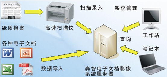 賽智電(diàn)子(zǐ)文(wén)檔影(yǐng)像管理(lǐ)系統 系統概述《賽智電(diàn)子(zǐ)文(wén)檔影(yǐng)像管理(lǐ)系統》是(shì)集計(jì)算(suàn)機(jī)技(jì)術(shù)、圖像處理(lǐ)技(jì)術(shù)、光(guāng)電(diàn)錄入技(jì)術(shù)、存儲技(jì)術(shù)發展而産生(shēng)的(de)一(yī)種現(xiàn)代化(huà)的(de)、高(gāo)效的(de)文(wén)檔管理(lǐ)理(lǐ)念。它是(shì)把各種紙(zhǐ)質文(wén)檔(如(rú)銀(yín)行(xíng)票(piào)據、保險保單、統計(jì)表表、設計(jì)圖紙(zhǐ)等)、圖像以及電(diàn)子(zǐ)文(wén)檔進行(xíng)高(gāo)速掃描/導入、海(hǎi)量存儲、瞬間(jiān)查詢和(hé)擁有(yǒu)完善權限管理(lǐ)的(de)系統。它同時(shí)對(duì)各類電(diàn)子(zǐ)文(wén)檔進行(xíng)分(fēn)類管理(lǐ),可(kě)以按用(yòng)戶的(de)需要(yào)随時(shí)提供影(yǐng)像資料或能(néng)編輯的(de)電(diàn)子(zǐ)文(wén)檔。它将替代傳統的(de)紙(zhǐ)質文(wén)檔管理(lǐ)和(hé)縮微(wēi)記錄系統。該系統廣泛适用(yòng)于政府、統計(jì)、金(jīn)融、醫(yī)療、交通(tōng)等産生(shēng)大(dà)量文(wén)檔、表單、圖紙(zhǐ)的(de)行(xíng)業(yè),把人(rén)們從(cóng)繁重低(dī)效的(de)、傳統目錄式的(de)文(wén)檔管理(lǐ)工(gōng)作(zuò)中解脫出來(lái),提高(gāo)了(le)工(gōng)作(zuò)效率和(hé)存儲空(kōng)間(jiān),并大(dà)大(dà)降低(dī)了(le)人(rén)員(yuán)成本,增強了(le)數(shù)據信息的(de)安全保障。最重要(yào)的(de)是(shì)使大(dà)量淹沒在紙(zhǐ)質海(hǎi)洋中的(de)有(yǒu)價值的(de)信息得(de)以脫離(lí)“信息孤島”,獲得(de)利用(yòng),為(wèi)用(yòng)戶增值。本系統獲得(de)“安徽省2005年(nián)度優秀軟件(jiàn)産品”證書(shū)。 系統結構 《賽智電(diàn)子(zǐ)文(wén)檔影(yǐng)像管理(lǐ)系統》是(shì)基于微(wēi)軟平台的(de)B/S結構,系統分(fēn)為(wèi)服務器(qì)端和(hé)客戶端,服務器(qì)端主要(yào)進行(xíng)數(shù)據錄入、分(fēn)類、存儲等處理(lǐ),客戶端主要(yào)進行(xíng)文(wén)檔影(yǐng)像的(de)查詢。該系統具有(yǒu)很(hěn)好(hǎo)的(de)兼容性和(hé)可(kě)擴充性,可(kě)以單機(jī)或在網絡上(shàng)運行(xíng)。