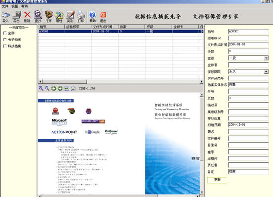 文(wén)檔影(yǐng)像服務 當面對(duì)大(dà)量的(de)紙(zhǐ)質、電(diàn)子(zǐ)和(hé)圖像格式文(wén)檔,您如(rú)何去(qù)保管海(hǎi)量的(de)曆史數(shù)據不(bù)丢失?又(yòu)如(rú)何去(qù)快(kuài)速檢索內(nèi)容? 《賽智電(diàn)子(zǐ)文(wén)檔影(yǐng)像管理(lǐ)系統》或将是(shì)您最佳的(de)選擇之一(yī)。《賽智電(diàn)子(zǐ)文(wén)檔影(yǐng)像管理(lǐ)系統》是(shì)集計(jì)算(suàn)機(jī)技(jì)術(shù)、圖像處理(lǐ)技(jì)術(shù)、光(guāng)電(diàn)錄入技(jì)術(shù)、存儲技(jì)術(shù)發展而産生(shēng)的(de)一(yī)種現(xiàn)代化(huà)的(de)、高(gāo)效的(de)文(wén)檔管理(lǐ)理(lǐ)念。它把各種紙(zhǐ)質文(wén)檔、圖像以及電(diàn)子(zǐ)文(wén)檔進行(xíng)高(gāo)速掃描/導入、海(hǎi)量存儲、自(zì)動生(shēng)成索引等程序處理(lǐ),可(kě)以通(tōng)過B/S和(hé)C/S方式快(kuài)速查詢,并擁有(yǒu)完善權限管理(lǐ)的(de)軟硬件(jiàn)結合的(de)系統。它不(bù)但(dàn)保留了(le)原始單據的(de)圖像文(wén)件(jiàn),而且對(duì)圖像文(wén)件(jiàn)進行(xíng)識别後建立索引文(wén)件(jiàn),進一(yī)步完成原始數(shù)據與單據的(de)核對(duì)工(gōng)作(zuò),并能(néng)根據建立的(de)索引快(kuài)速準确地(dì)找出原始圖像,将人(rén)們從(cóng)繁重低(dī)效的(de)、傳統目錄式的(de)文(wén)檔管理(lǐ)工(gōng)作(zuò)中解脫出來(lái),提高(gāo)了(le)工(gōng)作(zuò)效率和(hé)存儲空(kōng)間(jiān),并大(dà)大(dà)降低(dī)了(le)人(rén)員(yuán)成本,增強了(le)數(shù)據信息的(de)安全保障。 通(tōng)過《賽智通(tōng)用(yòng)文(wén)檔表格處理(lǐ)系統》和(hé)《賽智電(diàn)子(zǐ)文(wén)檔影(yǐng)像管理(lǐ)系統》的(de)結合,您可(kě)以獲得(de)對(duì)紙(zhǐ)質文(wén)檔/電(diàn)子(zǐ)文(wén)檔從(cóng)采集、校(xiào)對(duì)、格式轉換、存檔、分(fēn)析和(hé)報(bào)表的(de)完美(měi)服務。